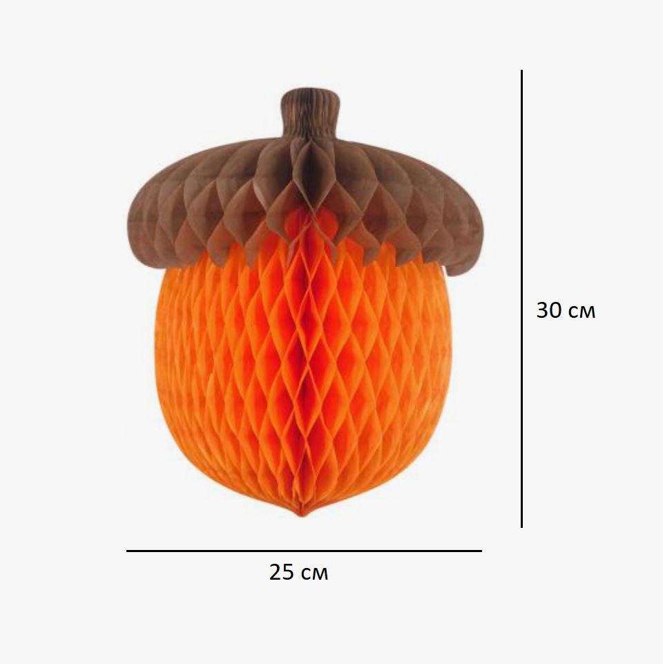 Бумажное украшение "Желудь" 30см — сочный и праздничный элемент для оформления стола, фотозон, витрин и интерьера. Поставляется в сложенном виде, легко раскрывается в пышную объёмную форму.