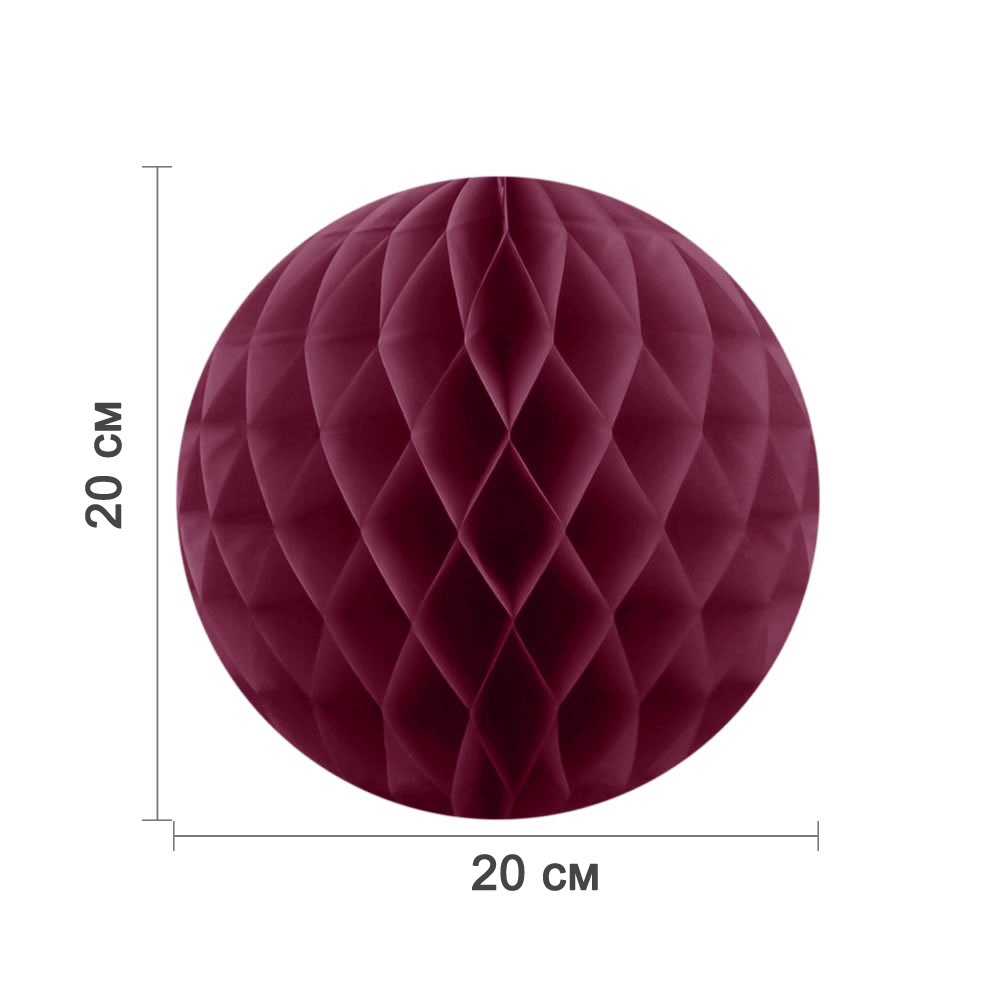 Бумажное украшение шар 20 см бордовый