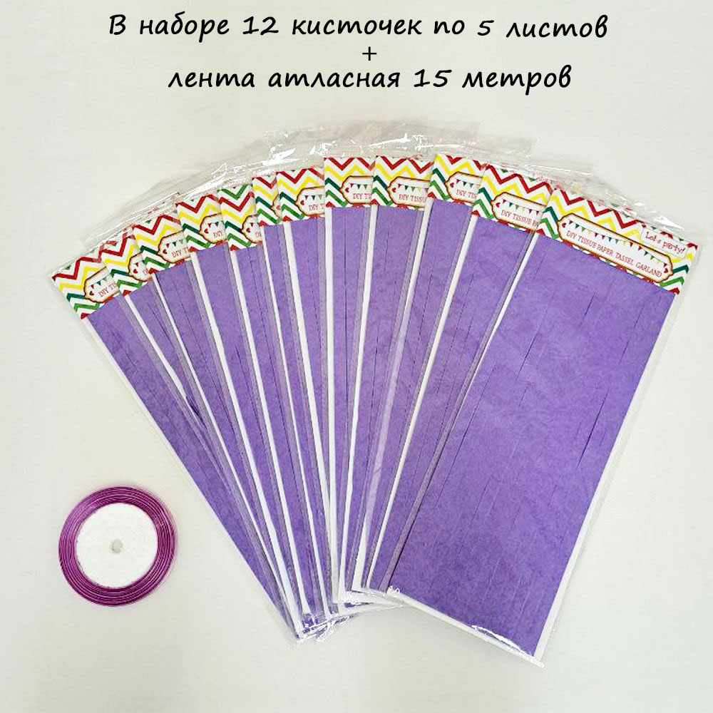 Гирлянда тассел 12 кисточек по 5 листов, светло-сиреневый