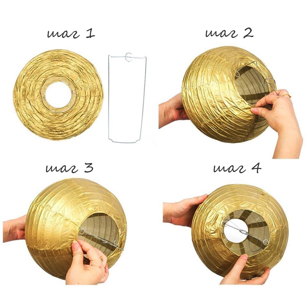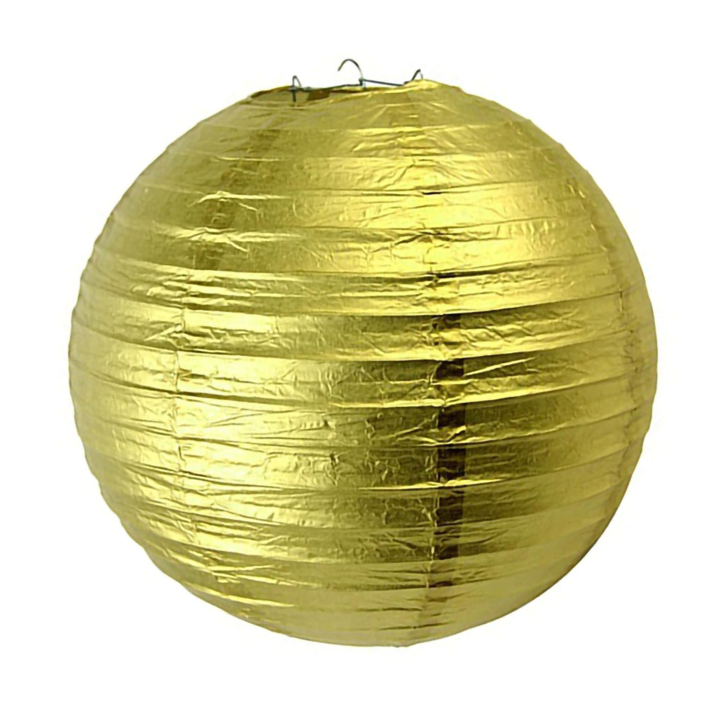 Шар — золотого цвета, прекрасно сочетается с фонариками разных размеров.
