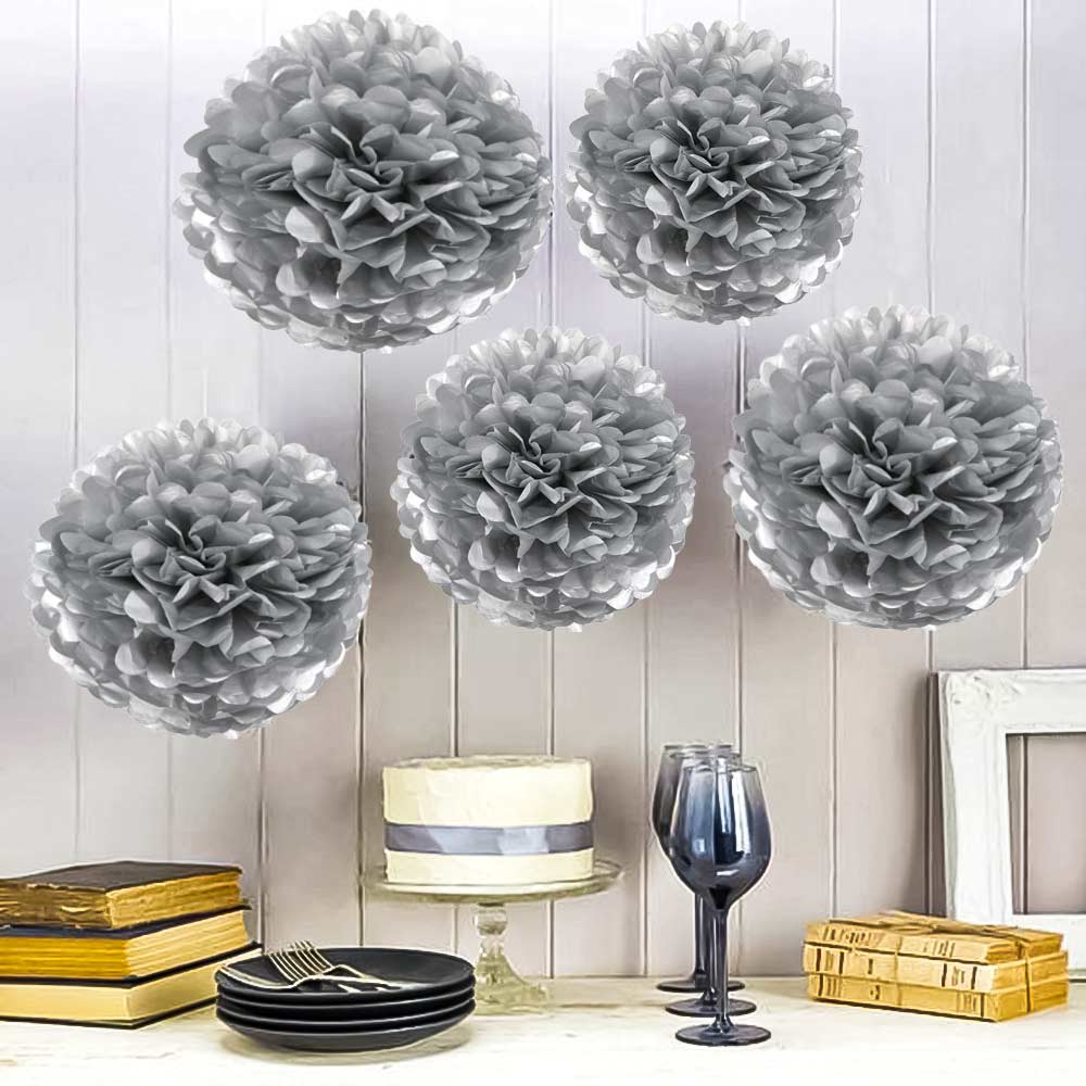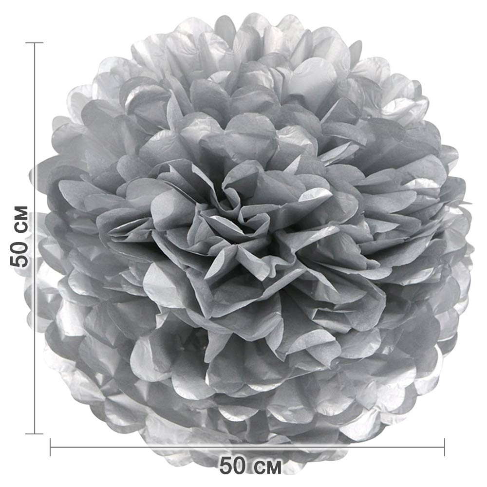 Помпон из бумаги 50 см серебро