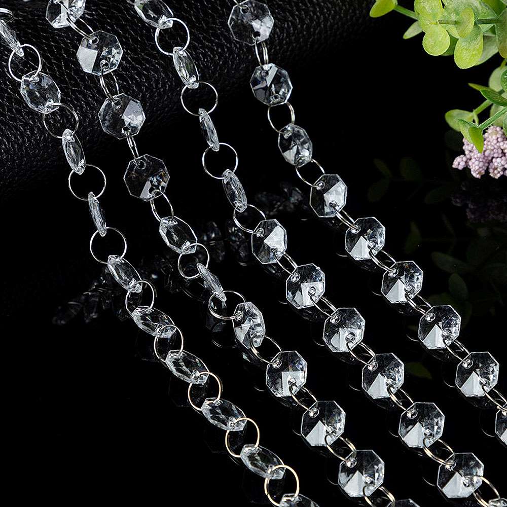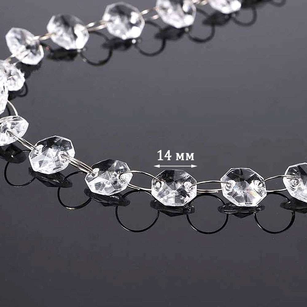 Стеклянные бусины граненые на кольцах 14 мм х 100 см "Пластинка"