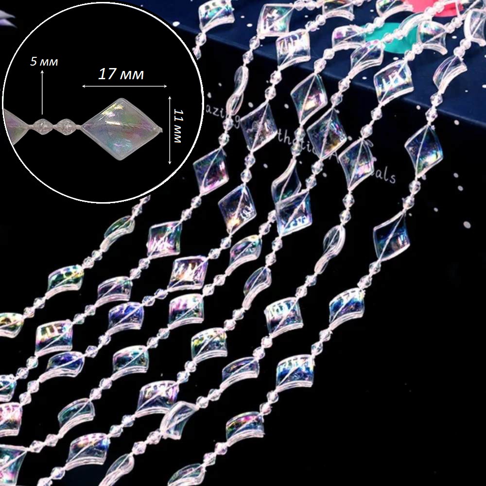 Прозрачные граненые бусины "Ромб плоский" с переливом из акрила для создания волшебной атмосферы.