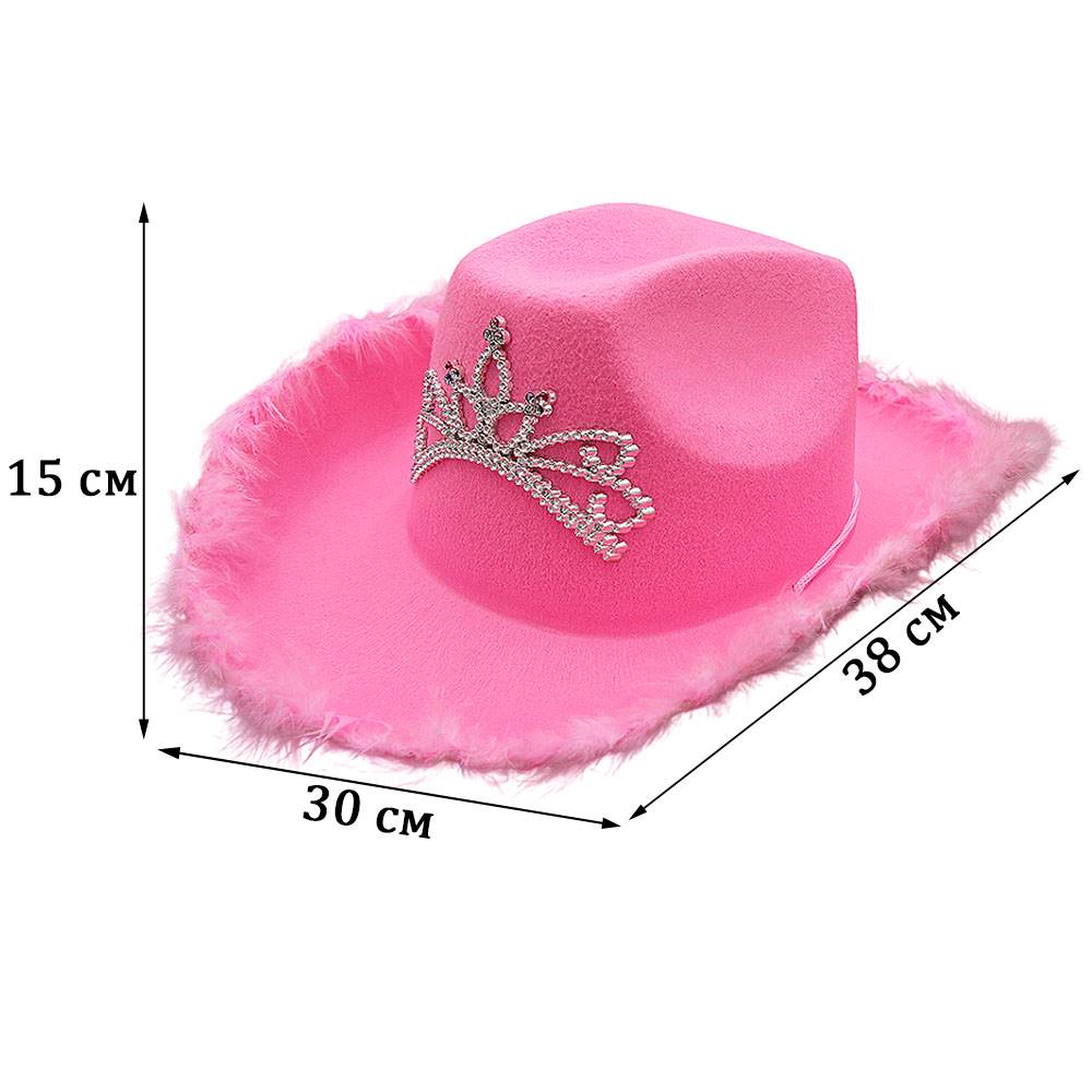 Шляпа ковбойская с перьями и короной, светло-розовый