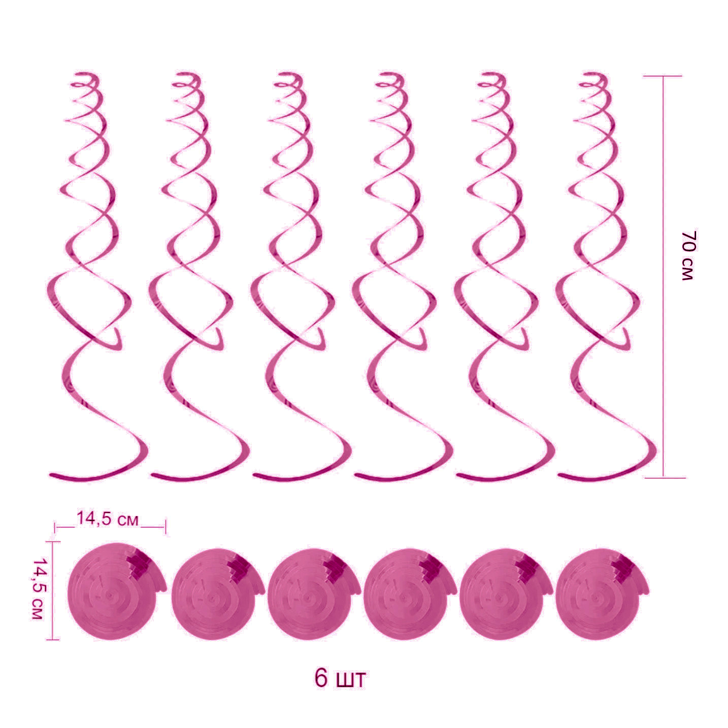 Спираль пластиковая 70см 6шт, малиновый