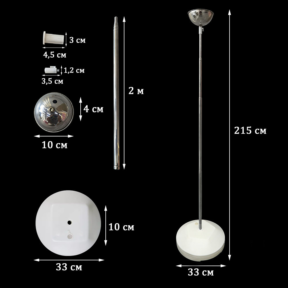 Телескопическая палка: стальная, выдвигается от 40 см до 2 м. Вставляется в основание через соединитель.