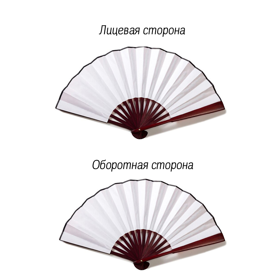Двухсторонний складной веер для танца. Выполнен из бамбука и плотной ткани.